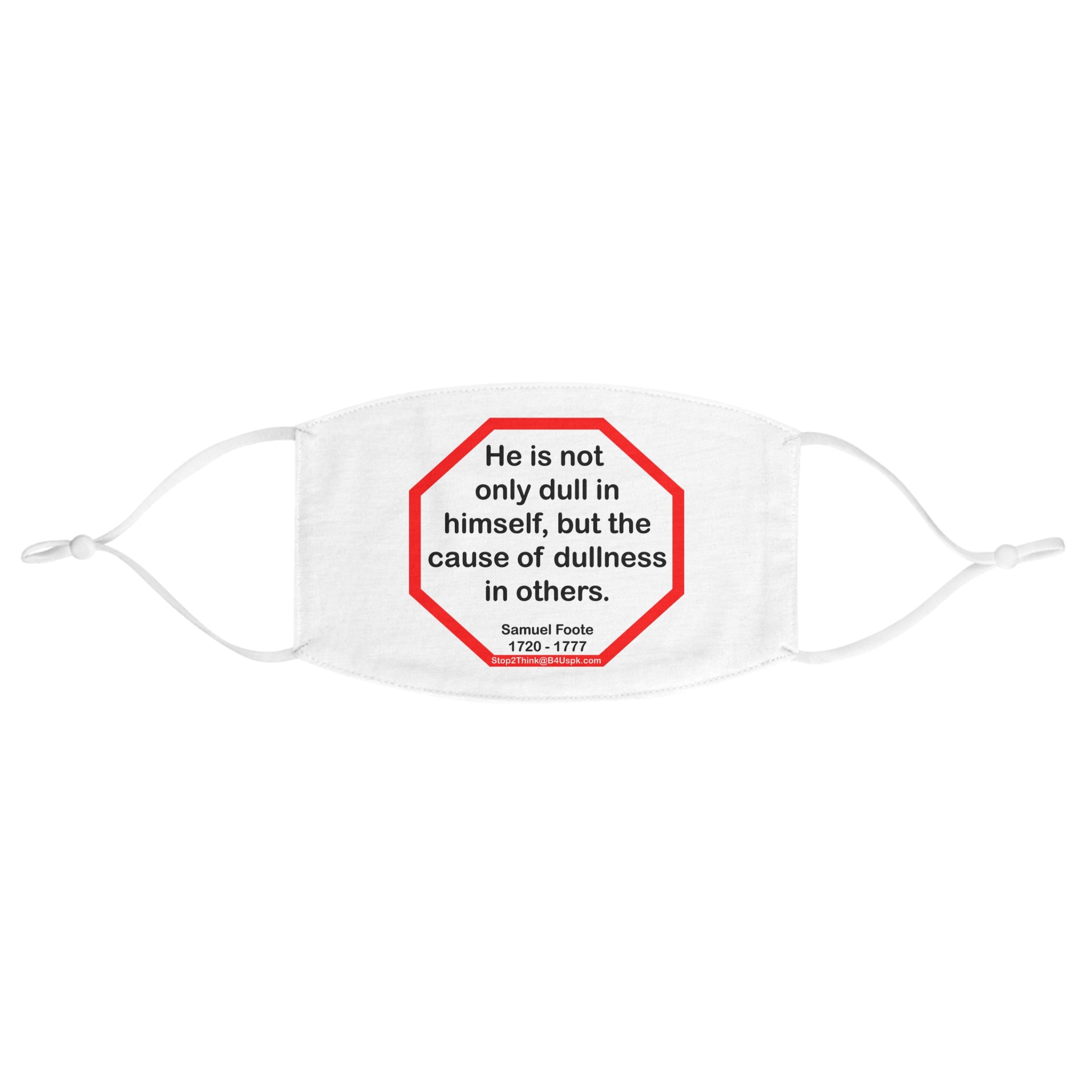 He is not only dull in himself, but the cause of dullness in others. - Samuel Foote 1720 - 1777 - B4Uspeak Make a Statement Fabric Face Mask wht